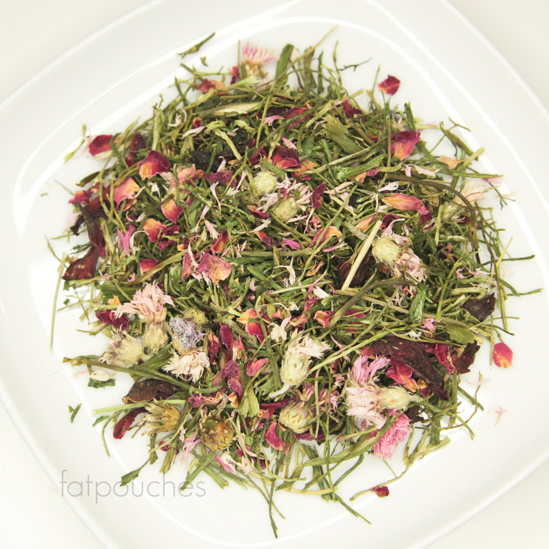Includes: Hibiscus, coriander stalks, celery stalks, dill stalks, spinach, chervil stalks, pink cornflowers, parsley stems, rose petals