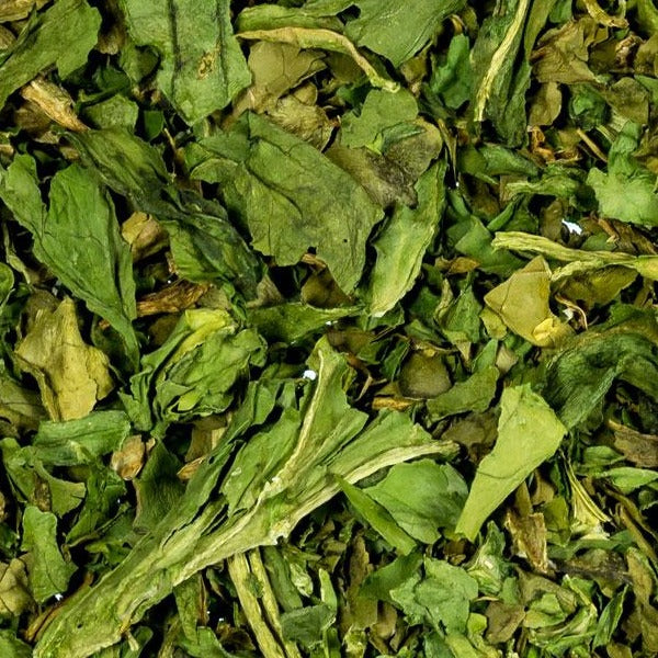 Spinach contains alot of minerals and vitamins (in particular vitamin C). It is rich in folic acids and contains a lot of ferric. Spinach is a very healthy supplementary food for rodents and dogs. Gently dried to preserve nutrients.